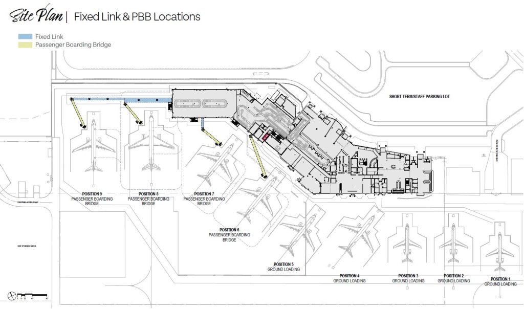 In September, engineering and planning teams reached 60% design status for an expansion to the airport that would add four new gates with jet bridges to the west of the current terminal building, Gerber said.