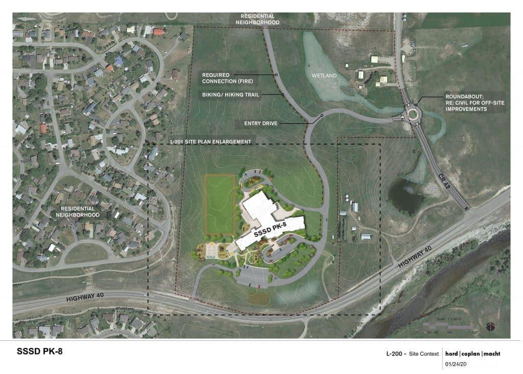 The main entrance from the school will be to the north of the site at a planned roundabout off of Routt County Road 42. A smaller road, connecting the site directly to U.S. Highway 40 to the south, is not intended for a lot of traffic, said owners rep Colleen Kaneda. It is part of meeting access requirements under fire codes and will only allow a right turn in and a right turn out.