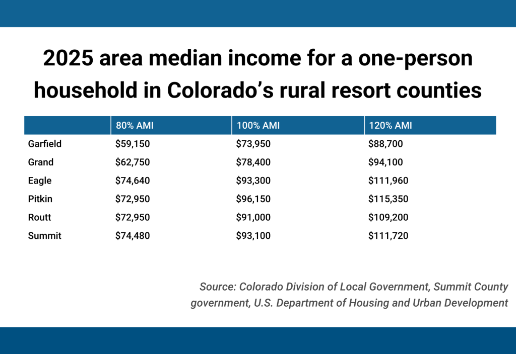 That funding is typically for for-sale housing aimed at 100% or below the area median income, or rental housing aimed at 60% or below. State lawmakers representing ski towns, however, successfully pushed for legislation in 2023 that allows rural resort communities to receive funding for projects that serve up to 140% of the area median income.