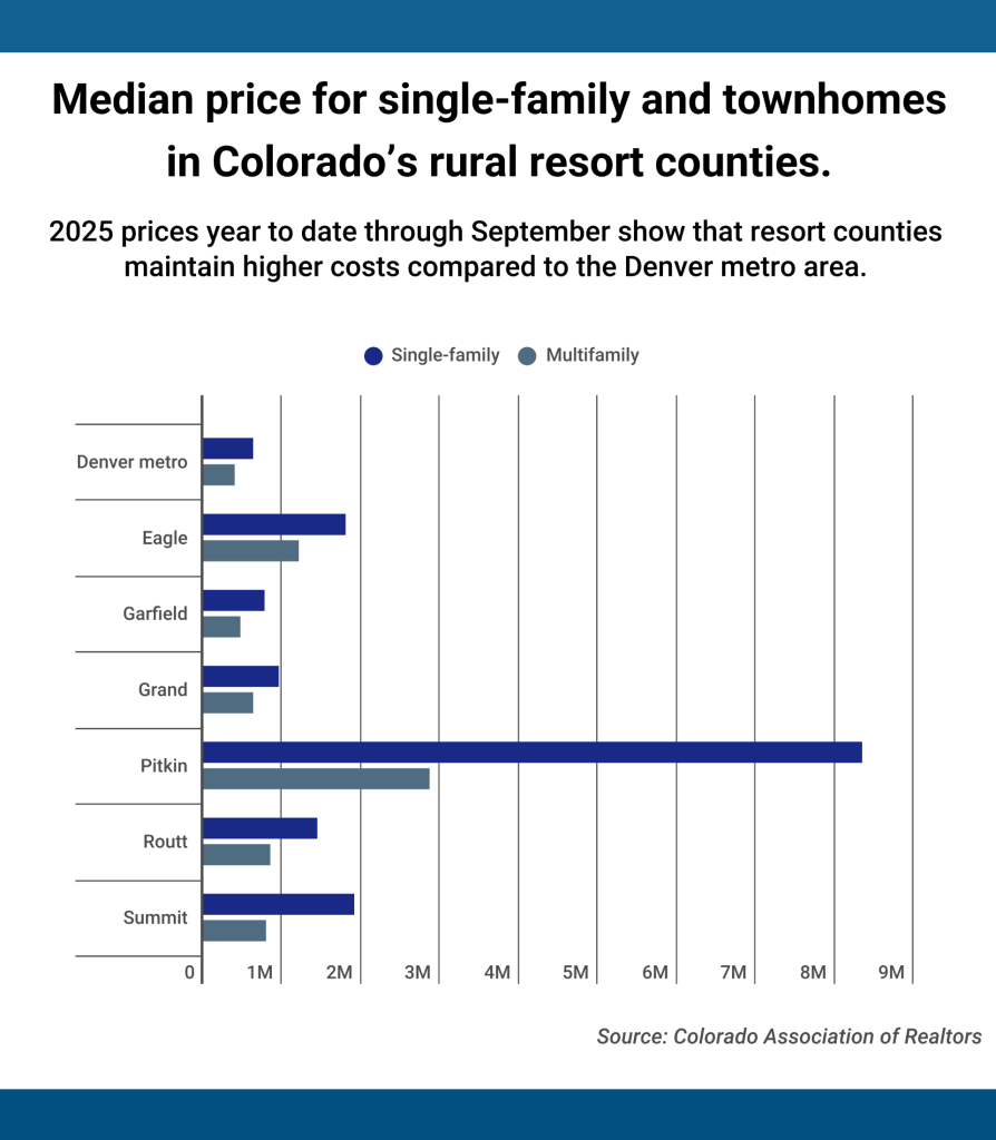 That’s the case for many families in the Roaring Fork Valley, where the current median price for a single-family home ranges from nearly $800,000 in Garfield County to over $8.3 million in Pitkin County, home to Aspen, Callaway said.