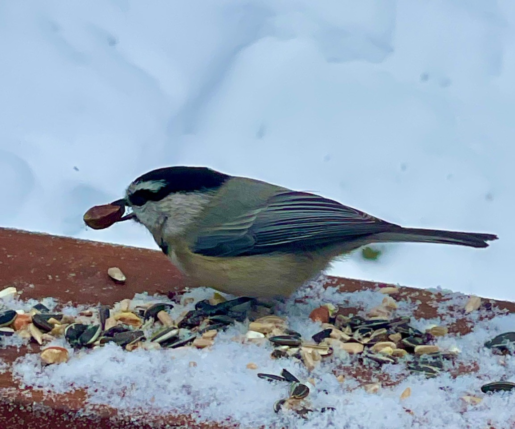 Individually, each mountain chickadee can cache as many as 80,000 seeds to store for winter, Harris said. Studies completed in recent years have shown that the hippocampus — the part of the brain responsible for memory and learning — of a black-capped chickadee, a species closely related to the mountain chickadee, grows up to 30% during the fall.