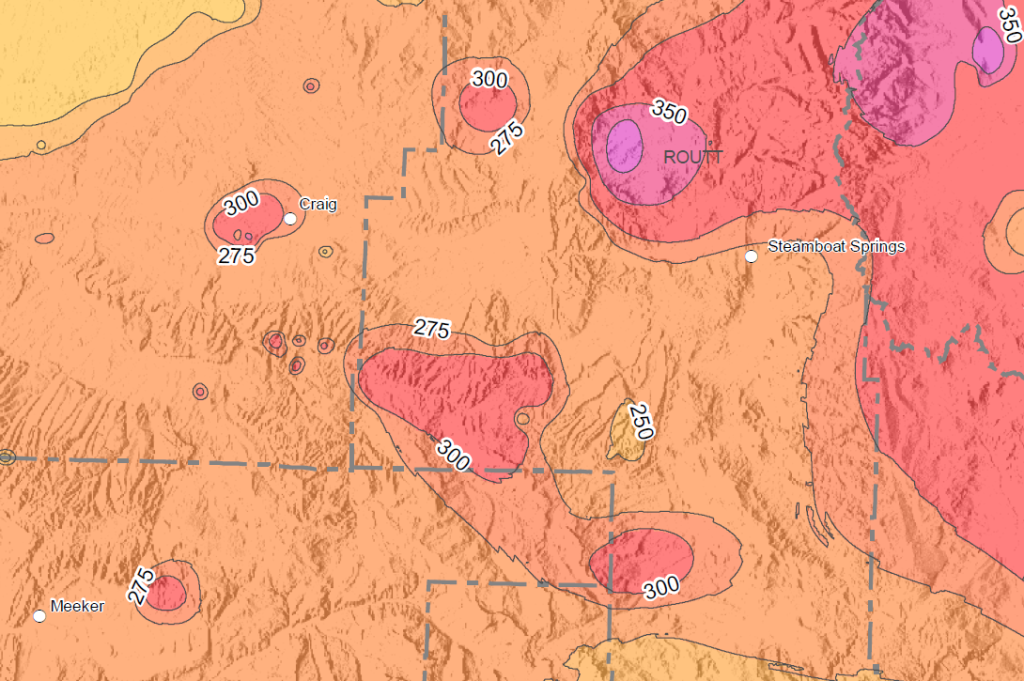 Colorado Energy Office Geothermal Program Manager Bryce Carter noted in an interview last week that the minimum underground temperature needed to produce geothermal electricity starts at 250 degrees Fahrenheit. Carter said previous studies have shown temperatures of 250 degrees exist near Hayden at about 10,000 feet deep.