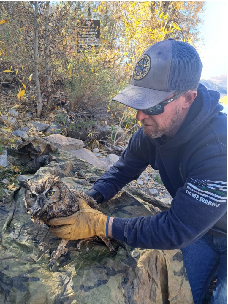 On the bank, he called Devin Duval, the district wildlife manager for Colorado Parks and Wildlife, who picked up the owl and brought it to a specialized veterinarian.
