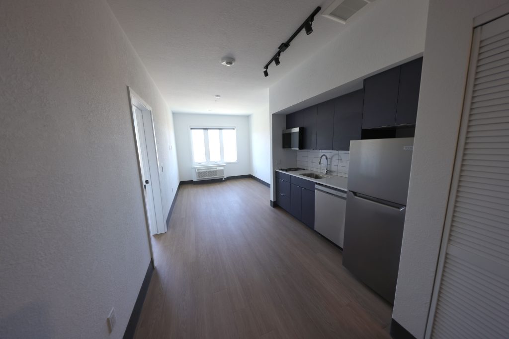 The 73 units, which will all be leased, start at $1,950 for a studio, $2,400 for a one-bedroom unit or $1,400 a person for a three-bedroom suite that was designed as three separate locking bedrooms with a shared kitchen and living area.