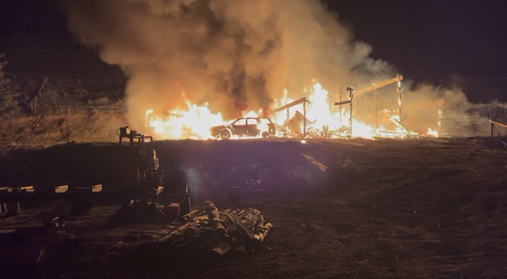 The barn, located at 47575 Routt County Road 52W, caught fire around 3:25 a.m. on Sunday. North Routt Fire Protection District firefighters responded to the scene with a fire engine and a water tender.