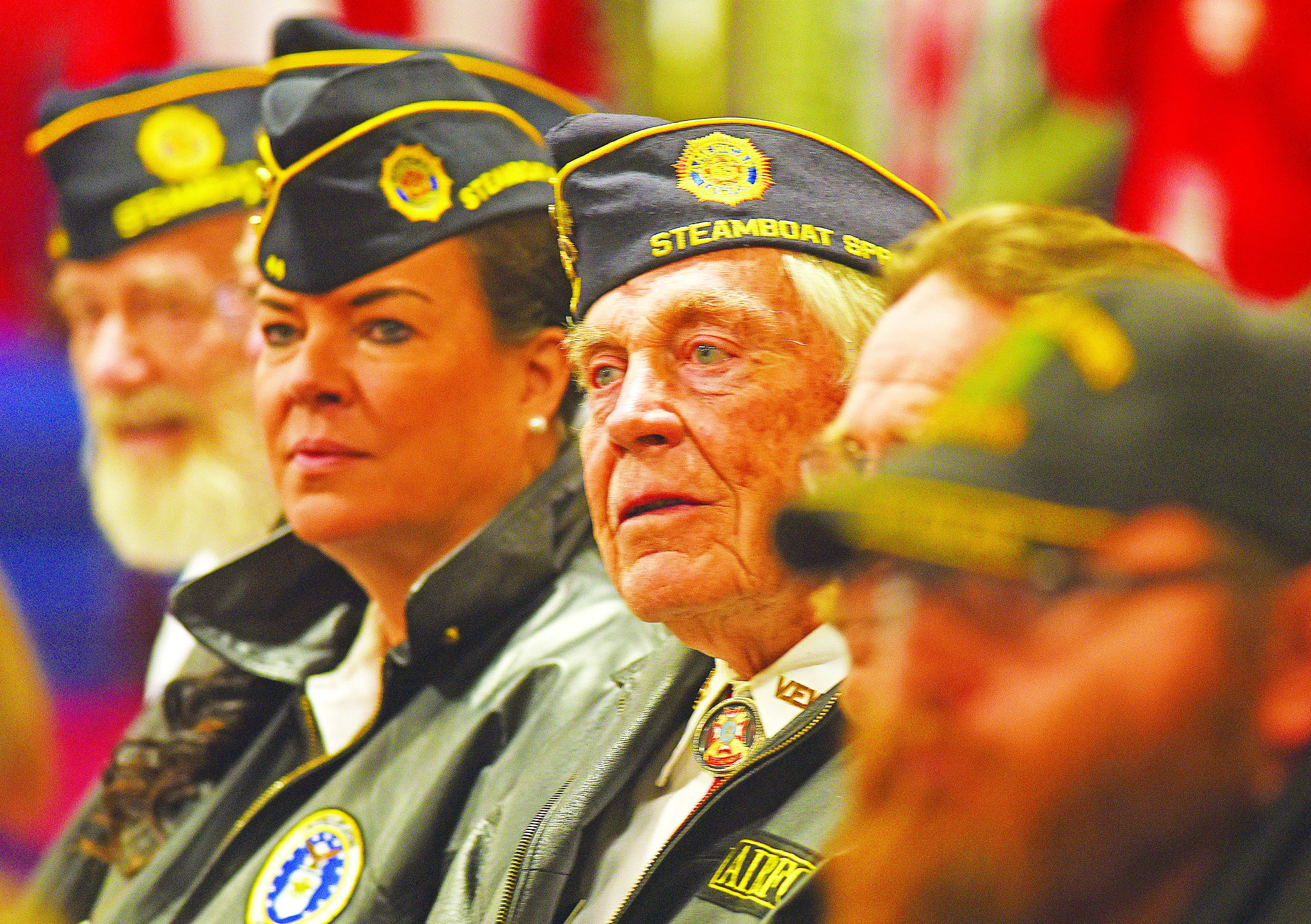 Retired U.S. Air Force Staff Sgt. Buck Buckland watches a Veterans Day ceremony put on by the students at Strawberry Park Elementary School. He was among a group of veterans honored by the students as part of the program. (Photo by John F. Russell)