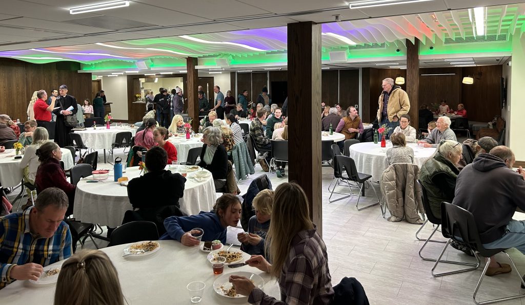 Holy Name Catholic Parish has hosted free community dinners 5:30-7 p.m. Tuesdays for many years, averaging 110 diners weekly. Church leaders estimate some 20% of the diners may attend due to financial hardships.