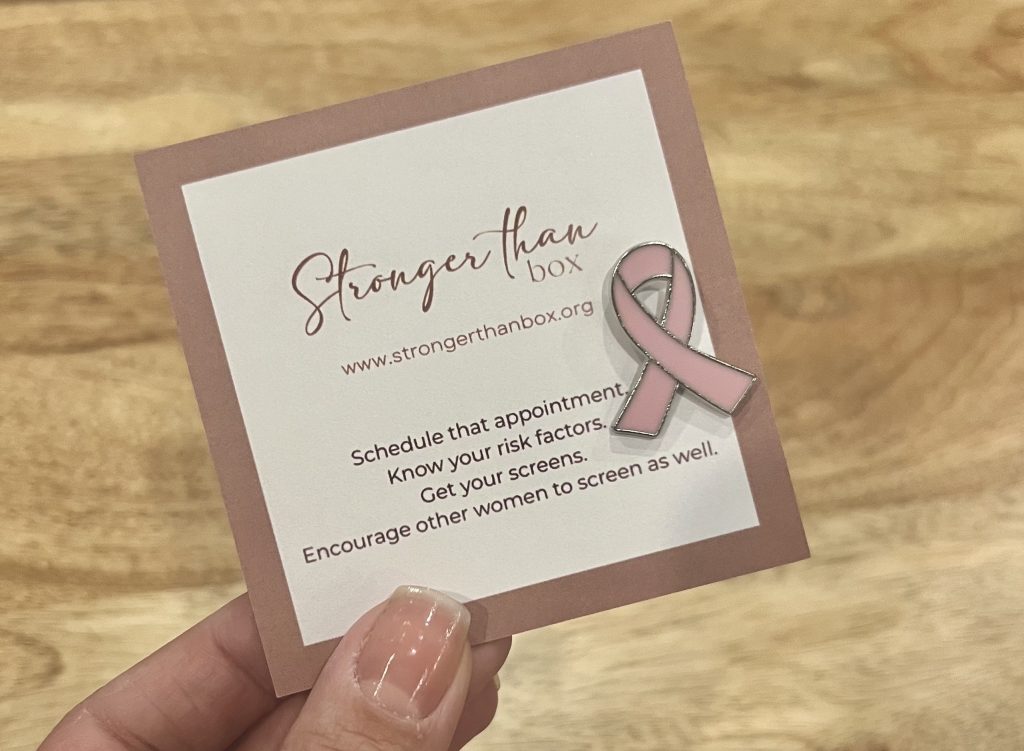 Multiple stores in Steamboat are partnering with Stronger Than Box to promote Breast Cancer Awareness Month in October by giving out a card with an attached pink ribbon lapel pin that reminds recipients to schedule a mammogram. In addition, Waterside Day Spa and Salon is donating gift cards for a service, and The Adorn Co. is donating a special breast cancer necklace for the nonprofit to sell to raise funds.