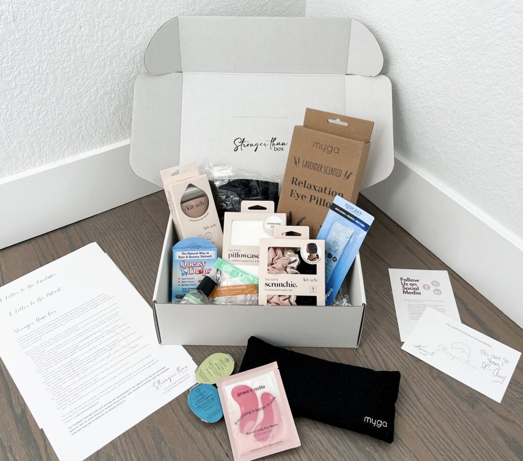 Gannon said the mission of her nonprofit is “to be the best part of their worst day.” She said patients and families often donate later after receiving a box, valued at $130, to pay it forward to the next patient undergoing treatment. To learn more, visit Strongerthanbox.org.