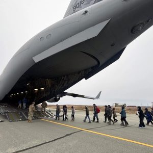 Helicopters plucked people from eroded runways, carrying them 60 miles to Bethel, population 6,200. As shelters overflowed, C-17 military transports thundered in to bring survivors to Anchorage, another 300 miles from home. Exhausted survivors filed from planes without much more than their clothing.